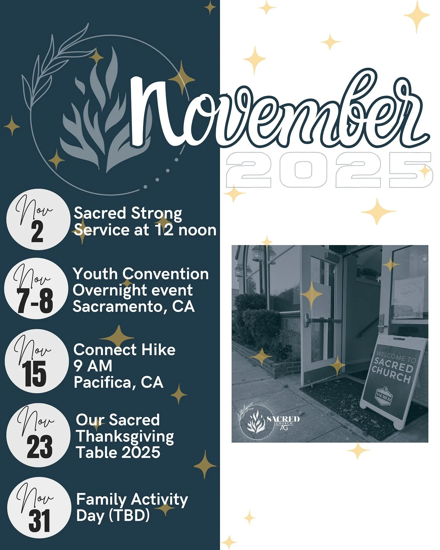 ๐ Meeting location: Sacred Church recreation room (to the right of the building)